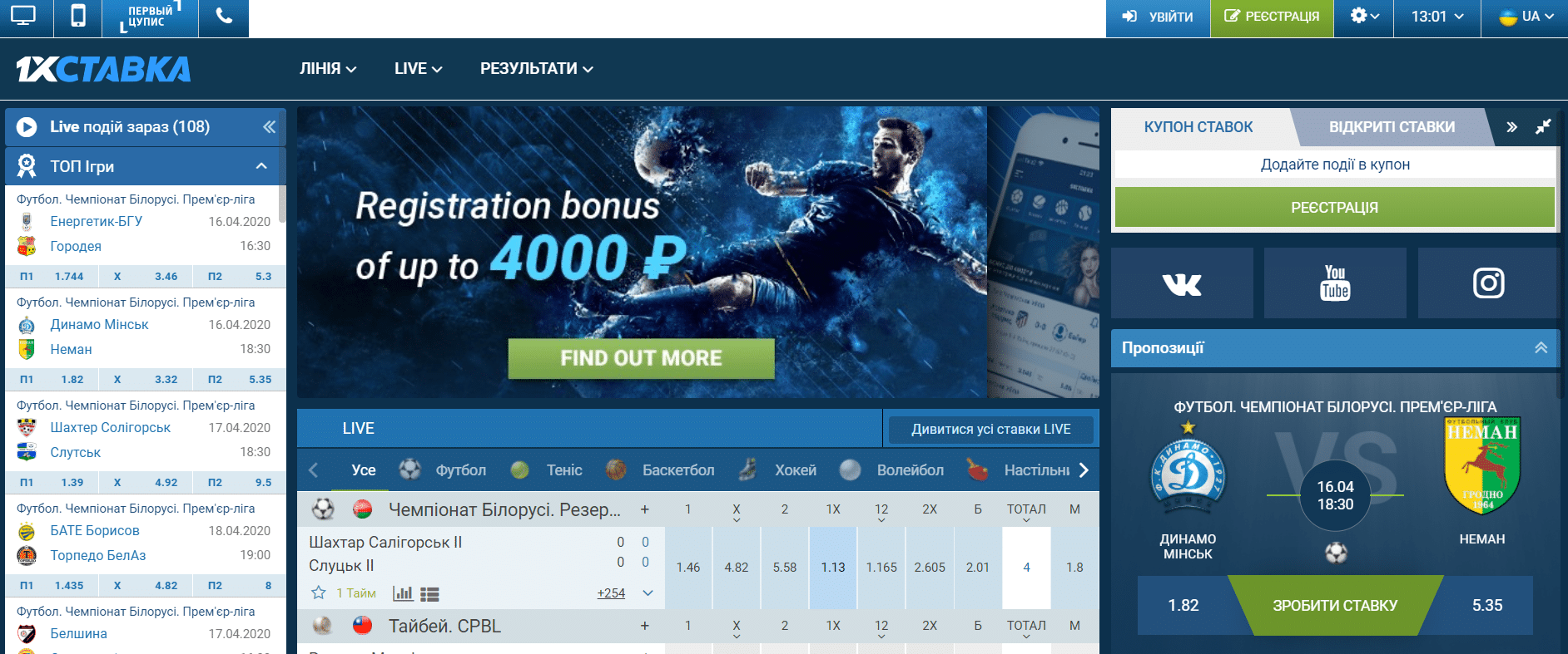 Почнемо опис із 1xstavka: